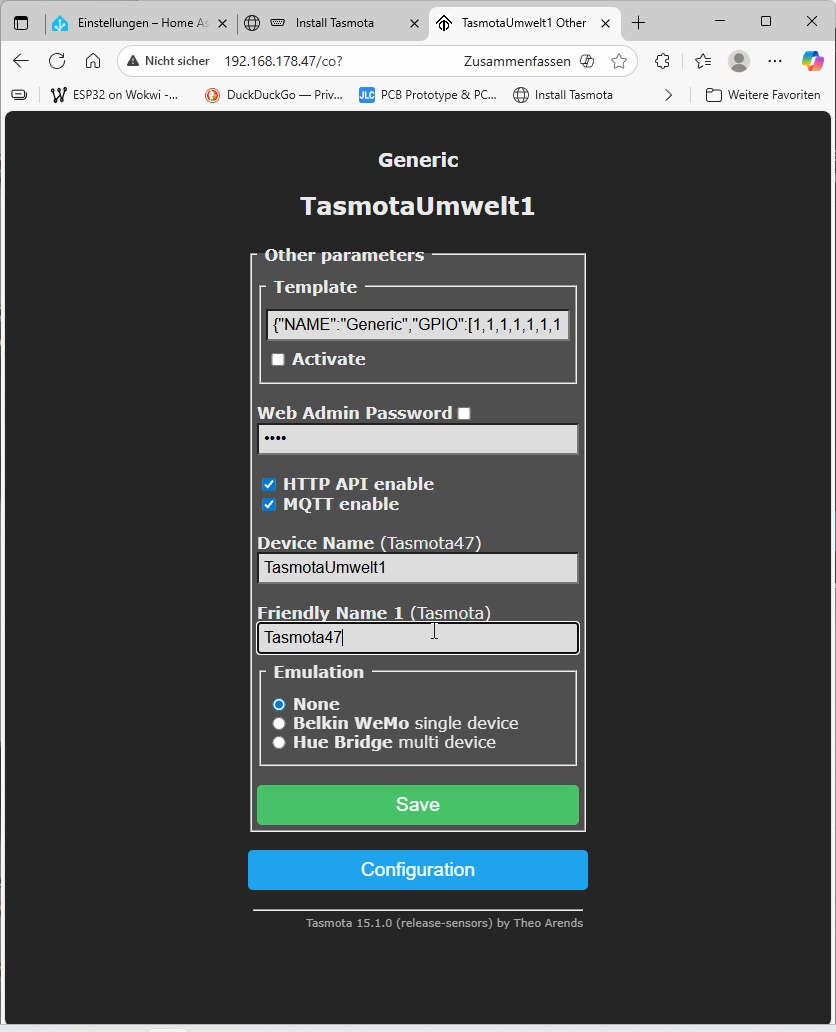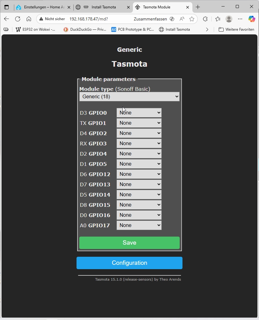 Das wars im Wesentlichen. Je nach Anwendung muss noch der MQTT-Zugang eingerichtet und die Pins konfiguriert werden. Dazu kommen spezifische Beiträge.